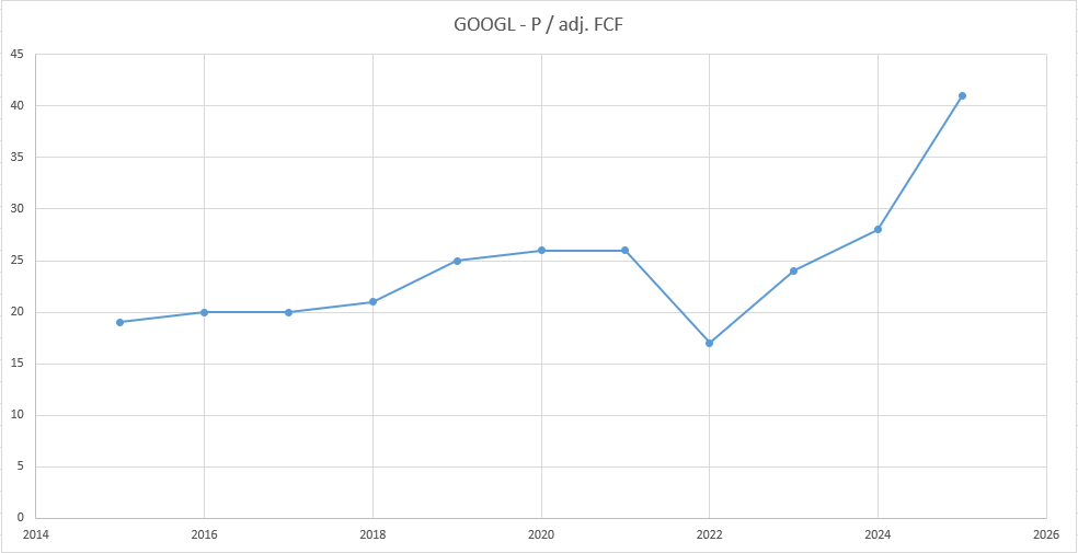 Alphabet ist ohnehin ein gutes Beispiel, weil es eines der Mag7 ist, die meistens als "moderat" bewertet galten. Ich mache mir nun nicht die Mühe und bewerte die anderen Unternehmen aus der Riege, es ist überall das Gleiche.