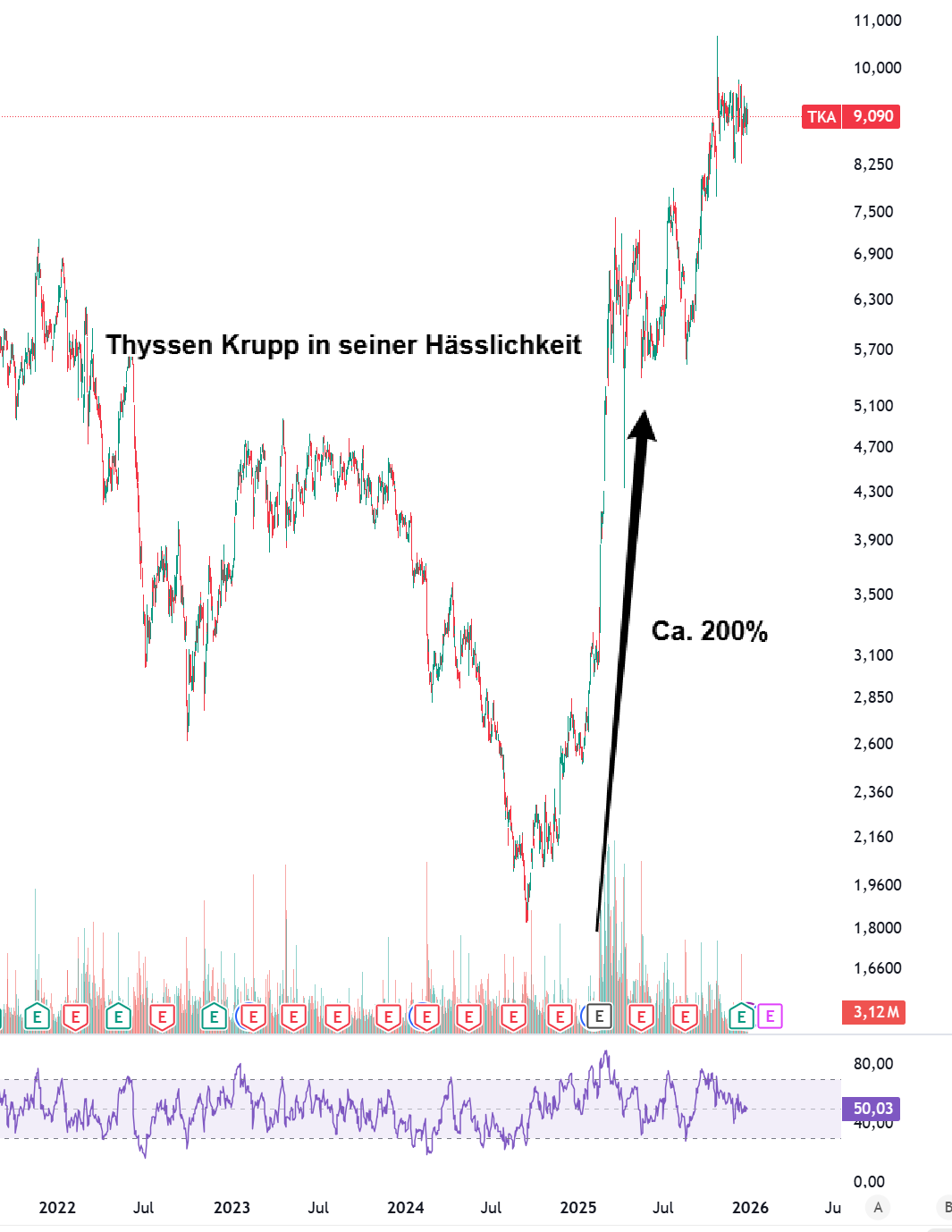 (Der Chart von Thyssen Krupp die letzten Jahre)
