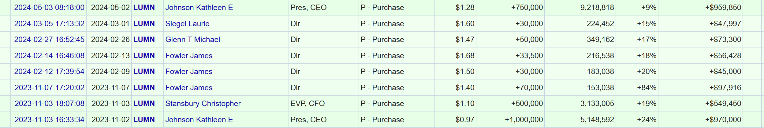 (Openinsider.com - Insiderkäufe im Unternehmen Lumen Technologies)